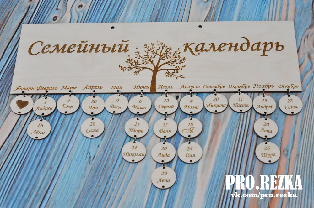 Семейный календарь - это очень полезная, удобная и, конечно же, оригинальная вещь, ведь, благодаря ему, Вы никогда не забудете поздравить родных и близких людей с памятными датами! А также великолепный вариант подарка на любой праздник! Перед изготовлением мы присылаем на согласование эскиз изделия в цвете.