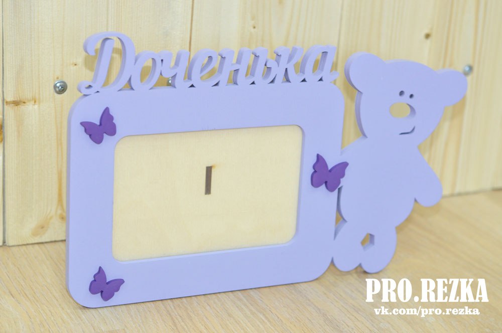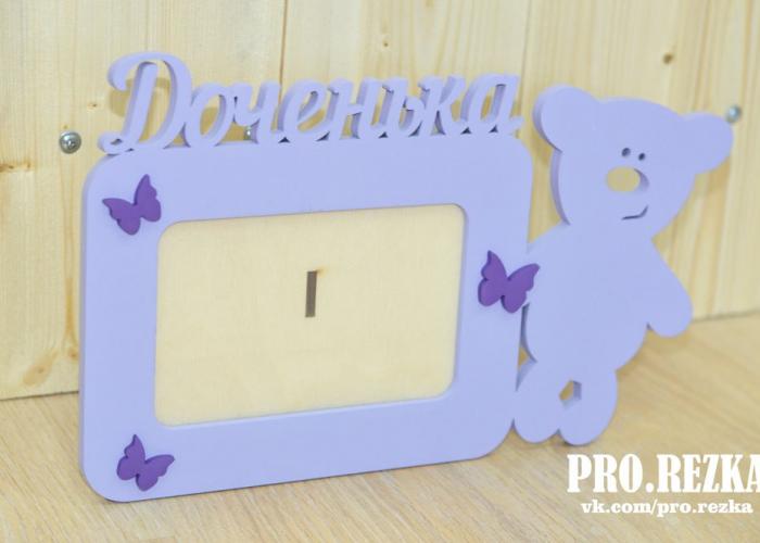 Милая фоторамка из дерева для доченьки - уникальный и неповторимый декор в детскую комнату! А также красивый и необычный подарок на рождение или день рождения малышки! Надпись, фигурки, размер и расположение рамки можно изменить по желанию. Перед изготовлением мы присылаем на согласование эскиз изделия в цвете.