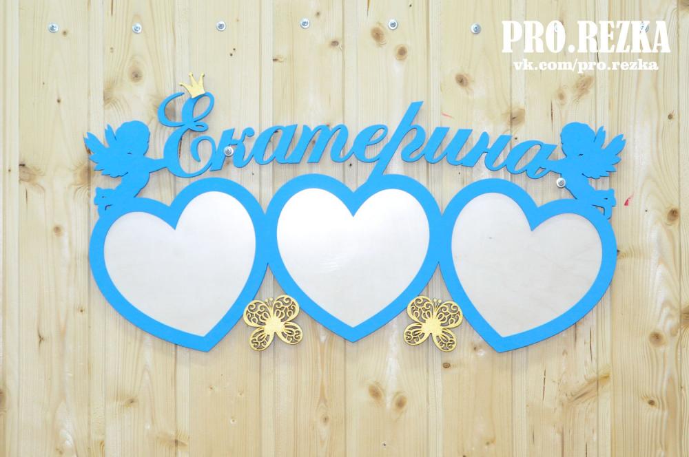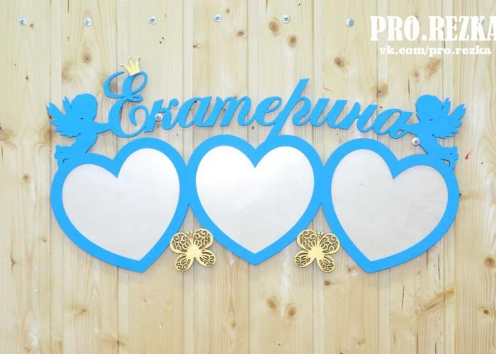 Яркая и оригинальная фоторамка из дерева с именем ребенка - уникальный и неповторимый декор для детской комнаты! А также красивый и необычный подарок на рождение или день рождения малыша! Надпись, количество, размер и расположение рамок можно изменить по желанию. Перед изготовлением мы присылаем на согласование эскиз изделия в цвете.