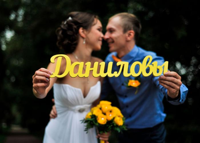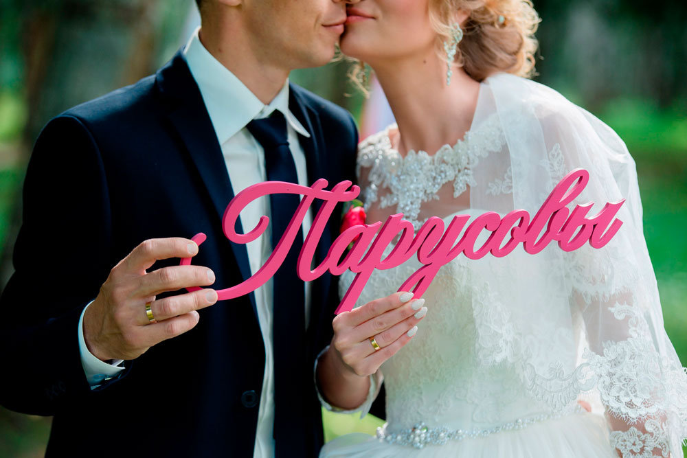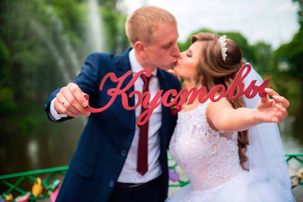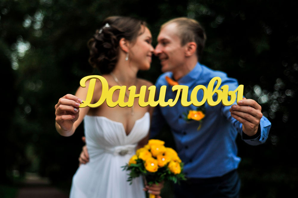 Фамилия из дерева достойно украсит Вашу свадебную фотосессию! Шрифт, размер и цвет могут быть самыми разнообразными! Перед изготовлением мы присылаем на согласование эскиз изделия в цвете.