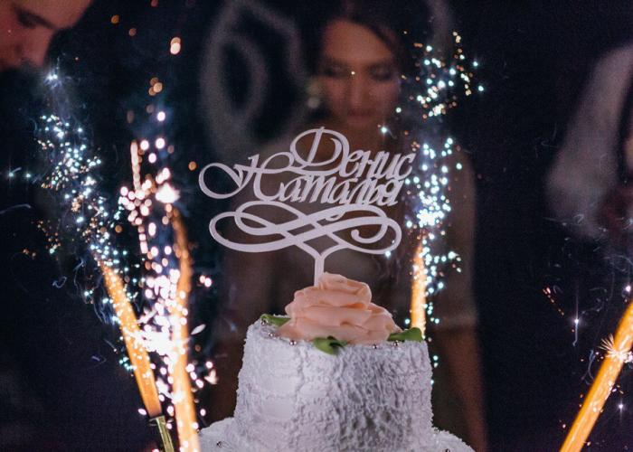 Ни одно свадебное торжество не может обойтись без настоящего свадебного торта! Он является кульминацией любого торжества! Вкусный, красивый и украшенный топпером торт сделает вашу свадьбу еще более запоминающейся! Шрифт, размер и цвет могут быть самыми разнообразными! Перед изготовлением мы присылаем на согласование эскиз изделия в цвете.