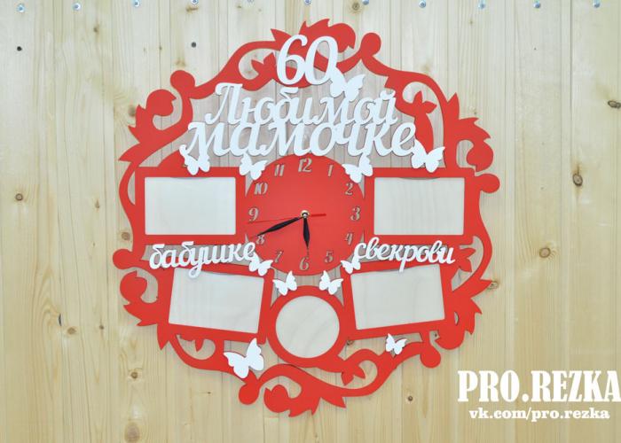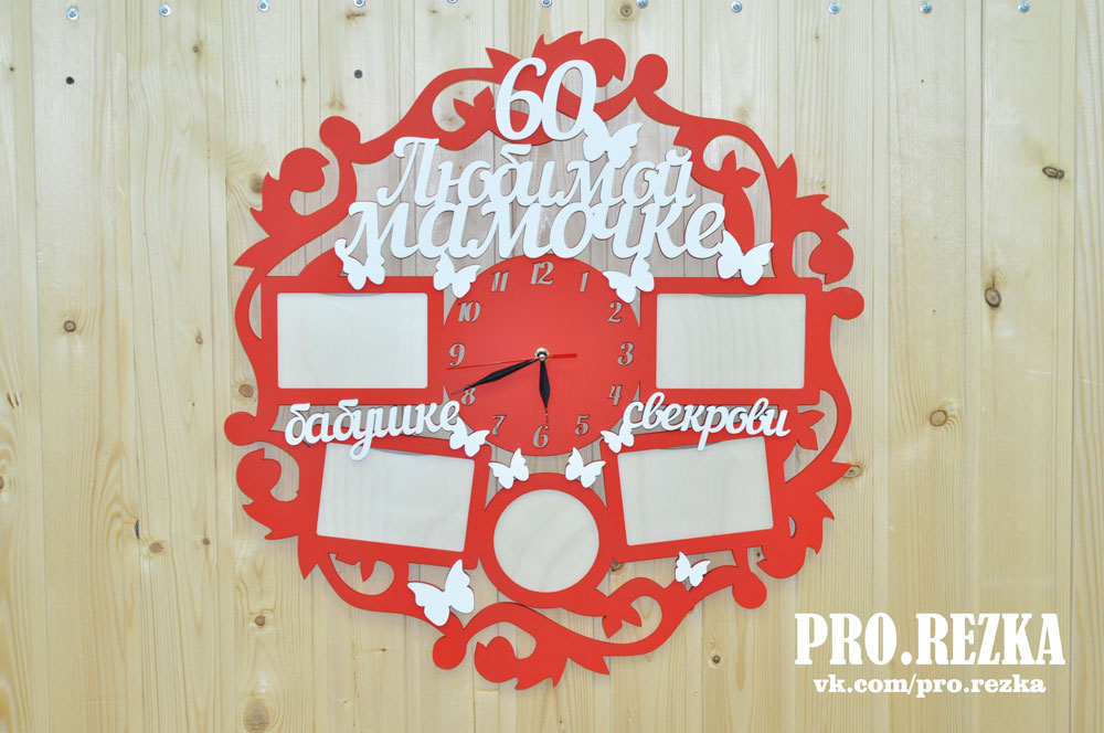 Яркая, оригинальная и функциональная фоторамка с часами для Любимой мамочки, бабушки и тёщи/свекрови - достойный подарок на Юбилей! Надписи, количество и расположение рамок можно изменить по желанию. Перед изготовлением мы присылаем на согласование эскиз изделия в цвете.