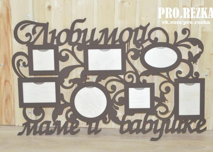 Шикарная фоторамка из дерева с изящными узорами - оригинальный и неповторимый подарок по любому поводу для любимой мамы и бабушки! Надписи, количество и расположение рамок можно изменить по желанию. Перед изготовлением мы присылаем на согласование эскиз изделия в цвете.
