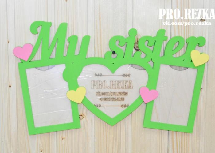 Яркая и оригинальная фоторамка из дерева в подарок для любимой сестрички! Что может быть лучше? Надписи, количество и расположение рамок можно изменить по желанию. Перед изготовлением мы присылаем на согласование эскиз изделия в цвете.