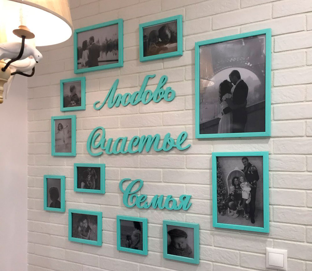 Если в вашем доме есть пустая и скучная стена, то с помощью композиции "Любовь, счастье, семья" Вы сможете разнообразить и оживить интерьер! Ведь без декоративных элементов очень трудно добиться уюта, комфорта и семейного тепла, которые так необходимы в любом семейном гнездышке! Надписи, количество и расположение рамок можно изменить по желанию. Перед изготовлением мы присылаем на согласование эскиз изделия в цвете.
