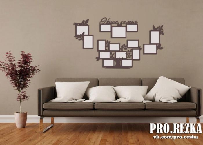 Если в вашем доме есть пустая и скучная стена, то с помощью композиции "Наша семья" Вы сможете разнообразить и оживить интерьер! Ведь без декоративных элементов очень трудно добиться уюта, комфорта и семейного тепла, которые так необходимы в любом семейном гнездышке! Надписи, количество и расположение рамок можно изменить по желанию. Перед изготовлением мы присылаем на согласование эскиз изделия в цвете.