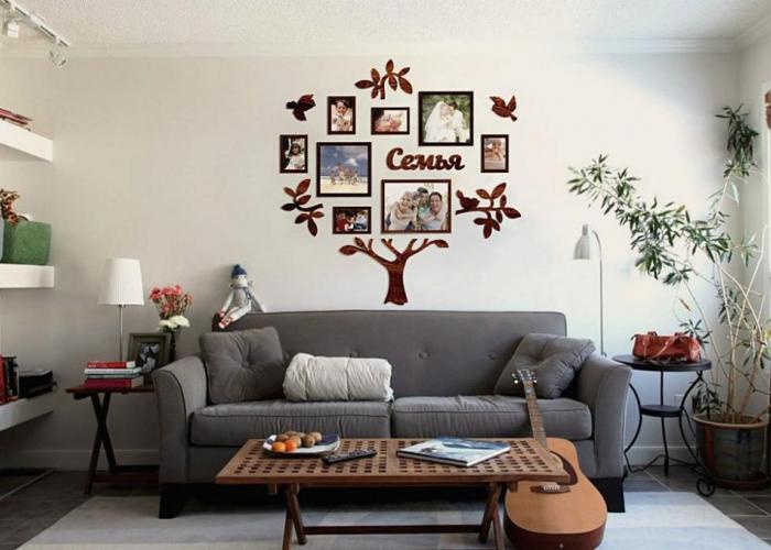 Если в вашем доме есть пустая и скучная стена, то с помощью композиции "Семейное дерево" Вы сможете разнообразить и оживить интерьер! Ведь без декоративных элементов очень трудно добиться уюта, комфорта и семейного тепла, которые так необходимы в любом семейном гнездышке! Надписи, количество и расположение рамок можно изменить по желанию. Перед изготовлением мы присылаем на согласование эскиз изделия в цвете.