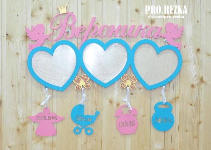 Метрика из дерева - изделие для тех, кто хочет превратить обычную комнату в уютную детскую или сделать достойный подарок новоиспеченным родителям! Надписи и фигурки, количество, размер и расположение рамок можно изменить по желанию. Перед изготовлением мы присылаем на согласование эскиз изделия в цвете.