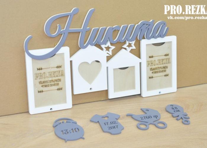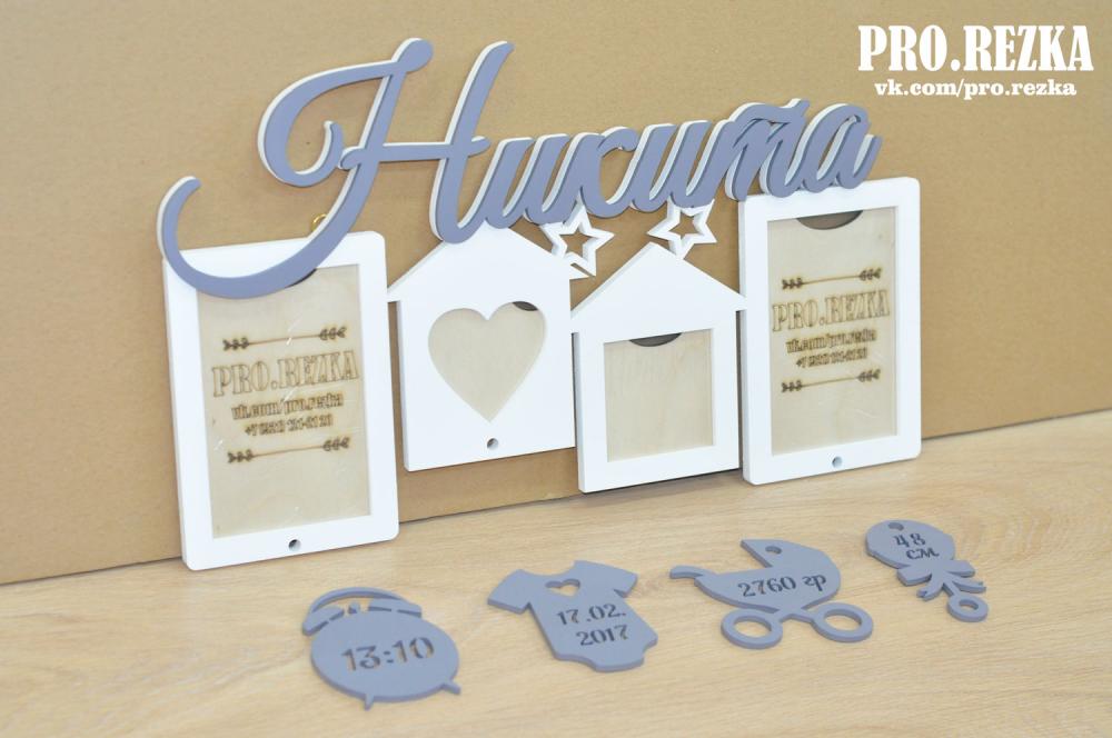 Метрика из дерева - изделие для тех, кто хочет превратить обычную комнату в уютную детскую или сделать достойный подарок новоиспеченным родителям! Надписи и фигурки, количество, размер и расположение рамок можно изменить по желанию. Перед изготовлением мы присылаем на согласование эскиз изделия в цвете.