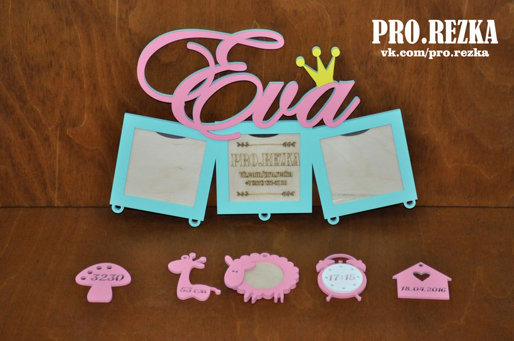 Метрика из дерева - изделие для тех, кто хочет превратить обычную комнату в уютную детскую или сделать достойный подарок новоиспеченным родителям! Надписи и фигурки, количество, размер и расположение рамок можно изменить по желанию. Перед изготовлением мы присылаем на согласование эскиз изделия в цвете.