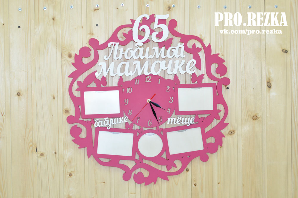 Яркая, оригинальная и функциональная фоторамка с часами для Любимой мамочки, бабушки и тёщи/свекрови - достойный подарок на Юбилей! Надписи, количество и расположение рамок можно изменить по желанию. Перед изготовлением мы присылаем на согласование эскиз изделия в цвете.