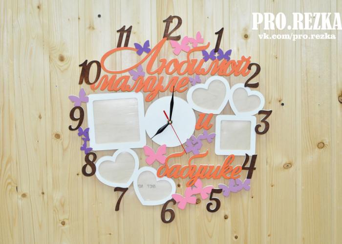 Как здорово, когда изделие не просто красивое, а еще и функциональное! Часы с фоторамками - идеальный вариант подарка для любимой мамули и бабушки! Часовой механизм бесшумный. Надписи, количество и расположение рамок можно изменить по желанию. Перед изготовлением мы присылаем на согласование эскиз изделия в цвете.