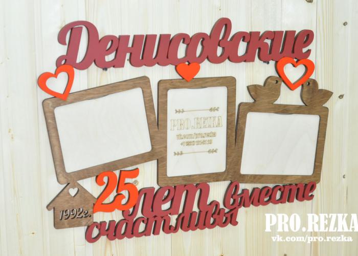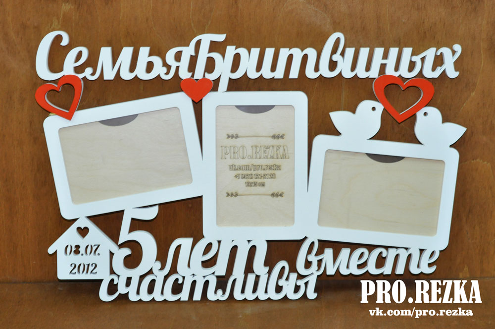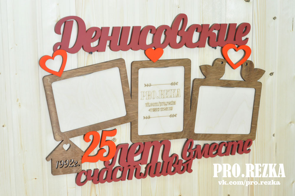 Ищете достойный и необычный подарок на годовщину свадьбы? Фоторамка с фамилией и датой свадьбы - идеальный вариант! Такой подарок не купишь ни в одном магазине! Надписи, количество, размер и расположение рамок можно изменить по желанию. Перед изготовлением мы присылаем на согласование эскиз изделия в цвете.