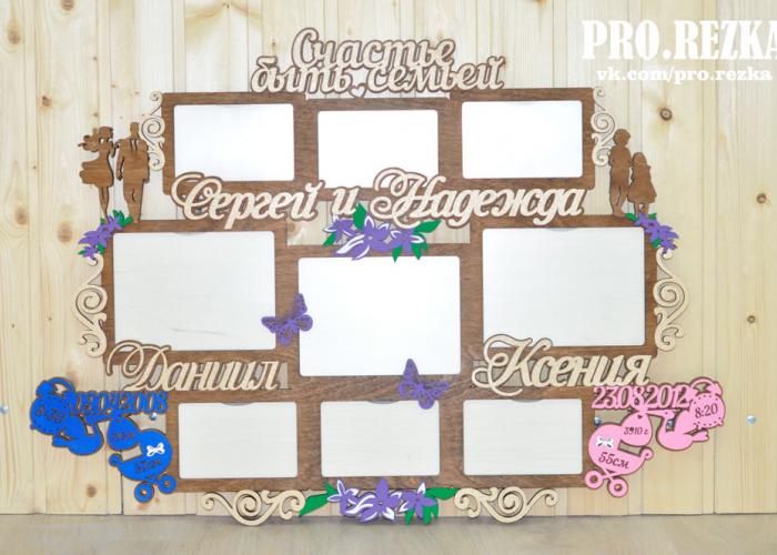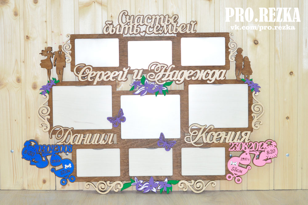 Невероятно красивая фоторамка "Счастье быть семьей" с именами всех членов семьи добавит еще больше тепла и уюта в ваш дом, а также станет эксклюзивным украшением интерьера! Надписи, количество, размер и расположение рамок можно изменить по желанию. Перед изготовлением мы присылаем на согласование эскиз изделия в цвете.