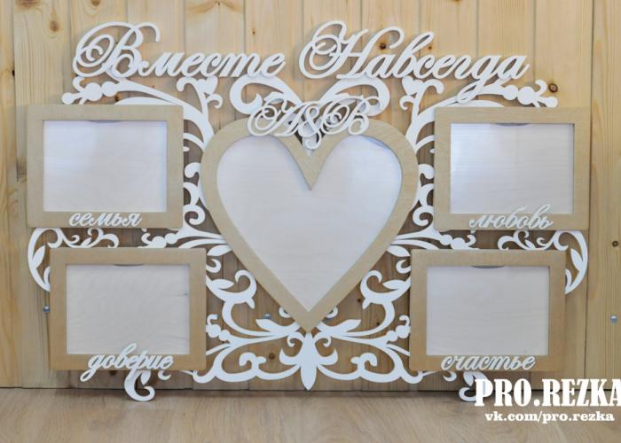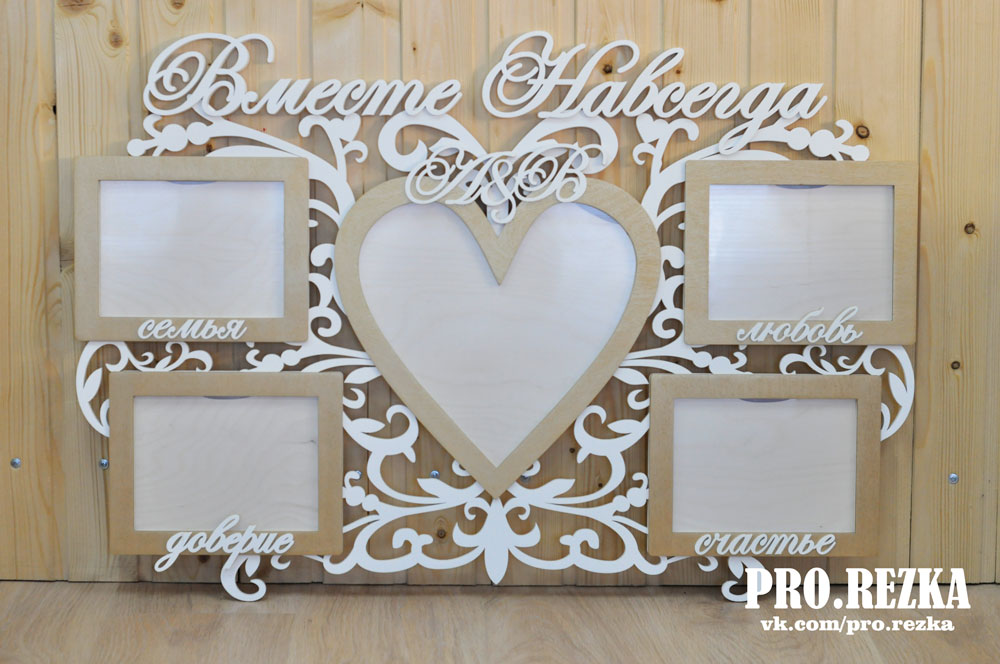 Годовщина совместной жизни - прекрасный повод напомнить о своих чувствах и подарить шикарную фоторамку "Вместе навсегда", чтобы сохранить в памяти самые яркие события в жизни, запечатленные на фото! Надписи, количество, размер и расположение рамок можно изменить по желанию. Перед изготовлением мы присылаем на согласование эскиз изделия в цвете.